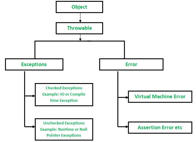 All exceptions and errors are unit sub classes of sophistication Throwable, that’s the bottom class of hierarchy. One branch is headed by Exception. This class is utilized for exceptional conditions that user programs have to be compelled to catch. NullPointerException is AN example of such an exception. another branch, the Error area unit utilized by the Java run-time system(JVM) to purpose errors having to do with the run-time setting itself(JRE). StackOverflowError is AN example of such a mistake.
